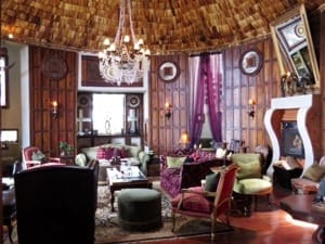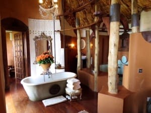 Our quarters made us feel like royalty. The sumptuous space was divided in a living area with a fireplace and a decanter of sherry, a large bedroom with huge windows overlooking our balcony, a lawn being grazed by zebras, and the crater valley below beyond that. The bathroom was of similar proportions to the bedroom, with to sinks, an indoor shower, and a large bathtub. The front door opened into a butler pantry. The door with the lock our key worked with was inside the butler pantry.