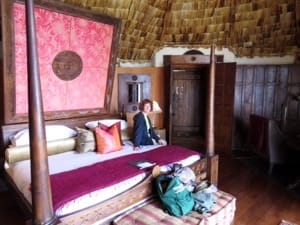 We were greeted by the staff singing a welcoming song. Then we were escorted to the sumptuous north lodge (there’s north lodge, south lodge, and the tree lodge) lounge to sign in and get briefed about the facility. The briefing seemed more perfunctory and businesslike, and everyone seemed a little stiffer. Then we were shown to our hut (North Camp #7).