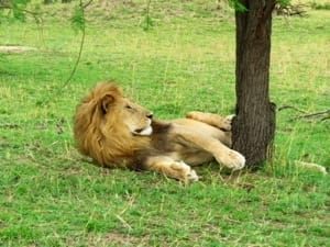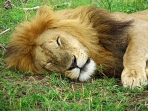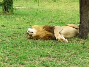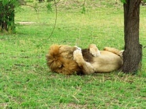 Having not only succeeded in one of our missions, but also succeeded in photographing all of the Big Five, we made to return to camp, passing through some cheetah territory again . We still didn’t see any cheetahs, but instead came across a big male lion with a full belly sleeping under a tree looking adorable. I took several pictures in cute poses and we returned to camp.